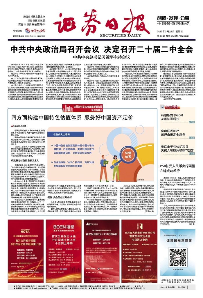 中国证监会2023年系统工作会议提及,“推动提升估值定价科学性有效性。深刻把握我国的产业发展特征、体制机制特色、上市公司可持续发展能力等因素,推动各相关方加强研究和成果运用,逐步完善适应不同类型企业的估值定价逻辑和具有中国特色的估值体系,更好发挥资本市场的资源配置功能”。