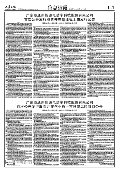 11、发行人和保荐机构(主承销商)郑重提示广大投资者注意投资风险,理性投资,请认真阅读2023年2月22日(T-1日)刊登在《中国证券报》《上海证券报》《证券时报》《证券日报》《中国日报》、经济参考网和中国金融新闻网上的《广东绿通新能源电动车科技股份有限公司首次公开发行股票并在创业板上市投资风险特别公告》(以下简称“《投资风险特别公告》”),充分了解市场风险,审慎参与本次新股发行。