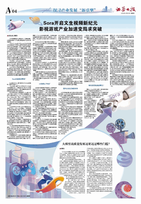Sora已然在大洋彼岸掀起新一轮技术变革,其商业价值如何体现?国内影视游戏产业又将如何面对挑战、抓住机遇?为此,《证券日报》记者深入一线,与影视、短剧、游戏等领域公司、投资者以及从业者对话,揭示其重塑多产业竞争格局的内在逻辑,描摹未来发展蓝图。