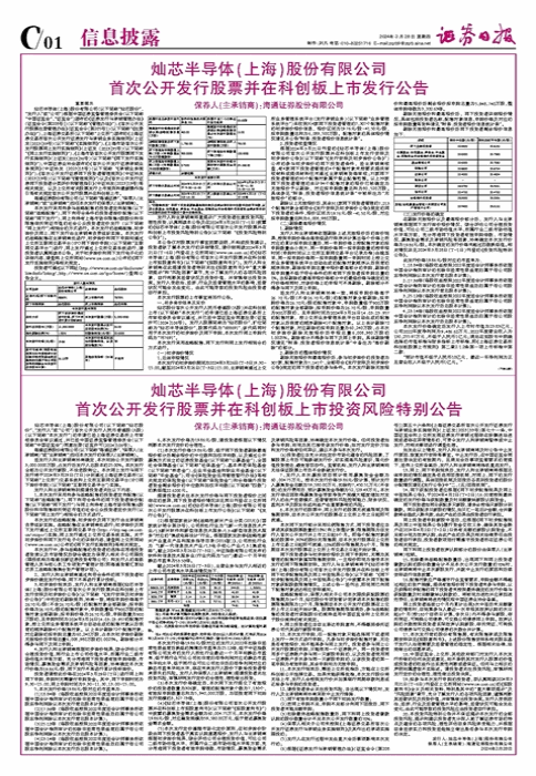 提请投资者关注本次发行价格与网下投资者报价之间存在的差异,网下投资者报价情况详见同日刊登在上交所网站(www.sse.com.cn)的《灿芯半导体(上海)股份有限公司首次公开发行股票并在科创板上市发行公告》(以下简称“《发行公告》”)。