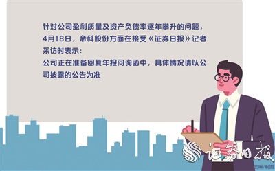 针对公司盈利质量及资产负债率逐年攀升的问题,4月18日,帝科股份方面在接受《证券日报》记者采访时表示:“公司正在准备回复年报问询函中,具体情况请以公司披露的公告为准。”