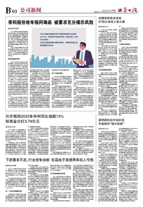 兴齐眼药2023年净利同比增超13% 拟现金分红3.74亿元