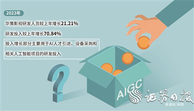 2023年,华策影视研发人员较上年增长21.21%,研发投入较上年增长70.84%,投入增长部分主要用于AI人才引进、设备采购和相关人工智能项目的研发投入。